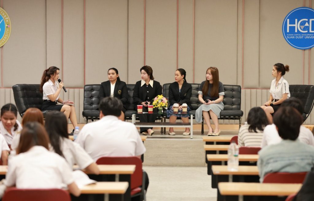 คณะมนุษยศาสตร์และสังคมศาสตร์ จัดกิจกรรมปัจฉิมนิเทศให้กับนักศึกษาชั้นปีที่ 4 ภายใต้โครงการมนุษยศาสตร์สู่ความก้าวหน้าทางวิชาการและวิชาชีพ HUSO to the Academic and Career Advancement โดย รองศาสตราจารย์ ดร.ยุทธพงษ์ ลีลากิจไพศาล คณบดีคณะมนุษยศาสตร์และสังคมศาสตร์ เป็นประธานในการกล่าวเปิดกิจกรรมในครั้งนี้ ได้รับเกียรติจาก คุณภูวดล ไชยสมบูรณ์ จากบริษัท JOBTOPGUN จำกัด เป็นวิทยากรบรรยาย และ คุณศุกมล เกษา คุณณิชา เตียวย่อง คุณธนพรรธน์ เอี่ยมสะอาด คุณพรชนัน วิมลภักดี เป็นผู้เข้าร่วมเสวนา ในวันพฤหัสบดีที่ 9 ตุลาคม 2568 เวลา 09.00 – 12.00 น. ณ ห้องประชุม 301 ชั้น 3 อาคาร ดร.ศิโรจน์ ผลพันธิน ศูนย์พัฒนาทุนมนุษย์ มหาวิทยาลัยสวนดุสิต