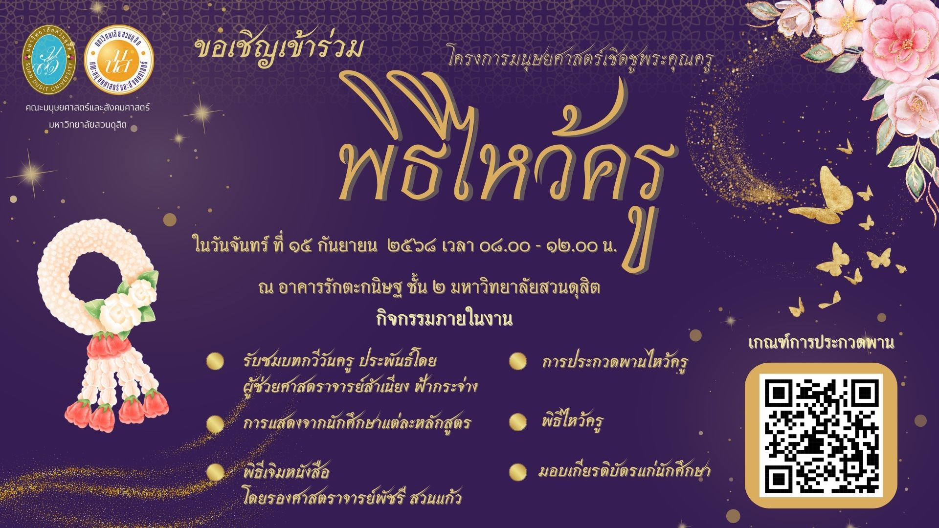 ขอเชิญนักศึกษาและคณาจารย์เข้าร่วมกิจกรรมพิธีไหว้ครู