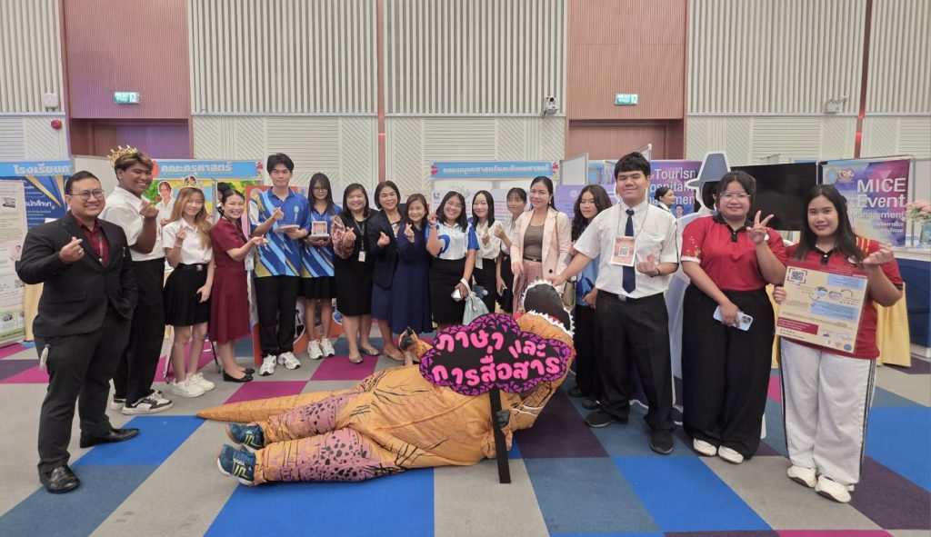 อาจารย์และนักศึกษาสาขาวิชาภาษาและการสื่อสาร คณะมนุษยศาสตร์และสังคมศาสตร์ เข้าร่วมกิจกรรมออกบูธแนะนำหลักสูตร เล่นเกม แจกรางวัลให้กับน้อง ๆ นักเรียนชั้นมัธยมศึกษาที่มาเข้าร่วมฯ งาน M-Sci United Expo 2025: Your FUTURE Your SDU ของคณะวิทยาการจัดการ มหาวิทยาลัยสวนดุสิต ณ หอประชุมรักตะกนิษฐ วันที่ 29 สิงหาคม 2568