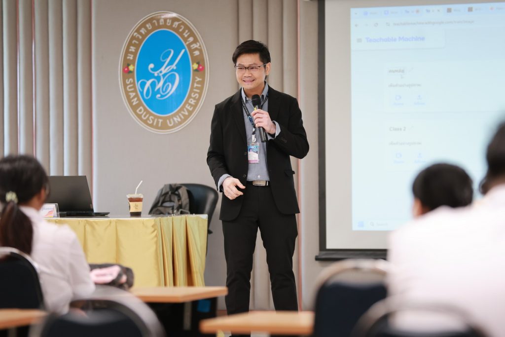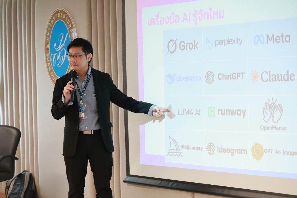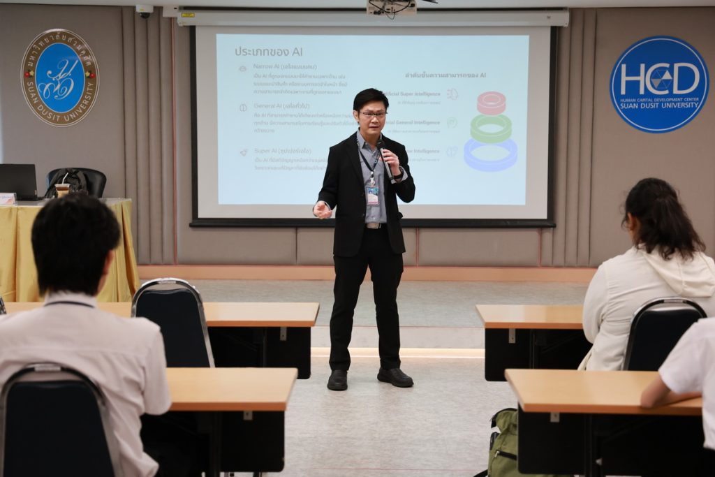 คณะมนุษยศาสตร์และสังคมศาสตร์ จัดอบรมเชิงปฏิบัติการ หัวข้อ “การพัฒนาทักษะ การใช้เทคโนโลยี AI เพื่อเพิ่มประสิทธิภาพการทำงาน” โดยได้รับเกียรติจาก ผู้ช่วยศาสตราจารย์ ดร. ชนินทร์ ฐิติเพชรกุล อาจารย์ประจำสาขาวิชาการประถมศึกษา คณะครุศาสตร์ เป็นวิทยากรในครั้งนี้ เมื่อวันที่ 15 สิงหาคม 2568 ณ ห้องประชุม 201 ศูนย์พัฒนาทุนมนุษย์ มหาวิทยาลัยสวนดุสิต ซึ่งกิจกรรมนี้เป็นส่วนหนึ่งของโครงการพัฒนาทักษะที่จำเป็นในการประกอบอาชีพ (Hard Skills) สำหรับนักศึกษา คณะมนุษยศาสตร์และสังคมศาสตร์